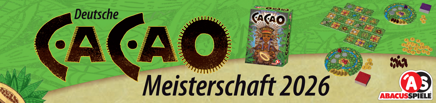 Auch in 2026 veranstaltet die Spielerei Bergstraße die Deutsche CACAO-Meisterschaft für den ABACUSSPIELE Verlag. Interessierte Spieleclubs und Initiativen können sich ab sofort bei der Spielerei Bergstraße um die Ausrichtung eines Qualifikationsturniers für den Turnierzeitraum von Anfang Januar bis Ende Oktober 2026 anmelden. Bewerben Sie sich einfach bis spätestens zum 28. Februar 2026 mit dem ausgefüllten Anmeldeformular bei uns.